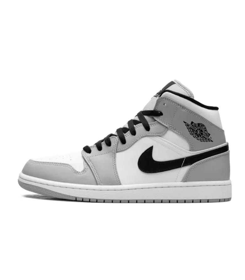 The Air Jordan 1 Mid “Light Smoke Grey” delivers a clean, versatile look with its mix of white leather, smoke grey overlays, and black accents. This mid-top silhouette bridges the gap between high and low, offering both ankle support and everyday wearability. A timeless design that complements any outfit.