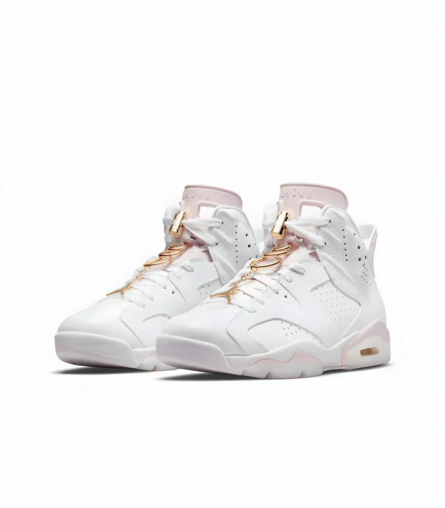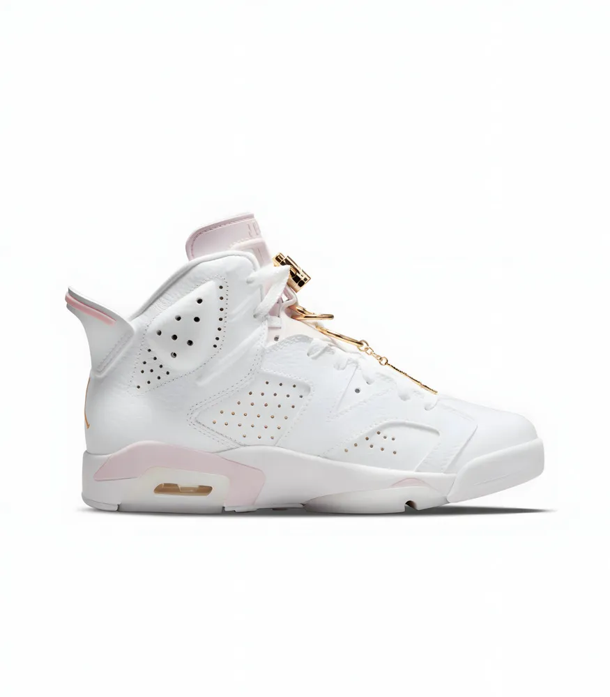 The Air Jordan 6 Retro “Gold Hoops” brings championship vibes to your sneaker rotation. With premium leather construction and striking gold accents on the heel and branding, this pair combines classic Air Jordan 6 styling with a touch of elegance. The cushioned midsole and signature lace toggle ensure all-day comfort while turning heads.