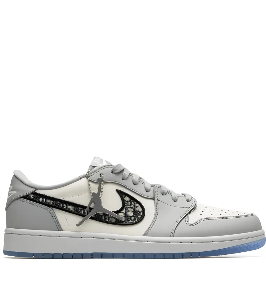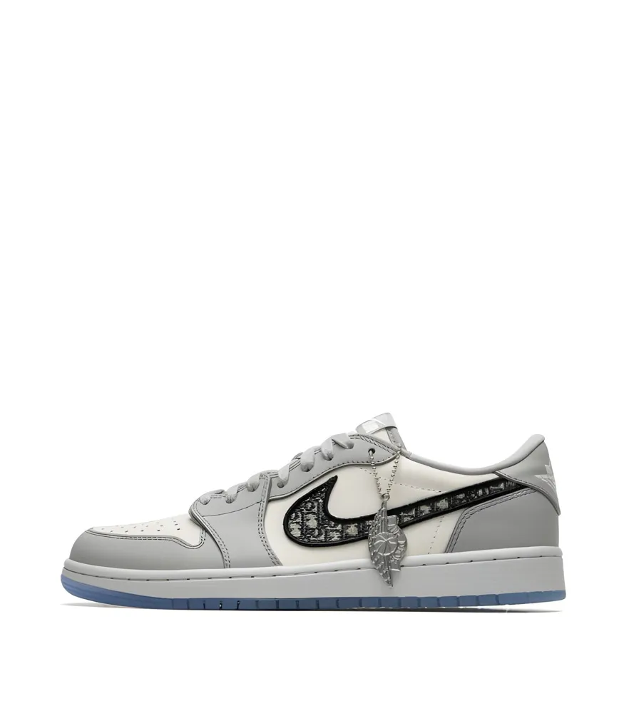 The Dior x Air Jordan 1 Low OG โDiorโ delivers the same luxury craftsmanship as its High-top counterpart in a sleeker, low-cut design. Released in 2020 alongside the exclusive Air Dior collection, this limited-edition sneaker combines Diorโs Parisian elegance with Jordan Brandโs heritage. Premium Italian leather, hand-painted edges, and the signature Dior Oblique monogram Swoosh highlight its refined style. Finished with translucent soles and co-branded Air Dior wings, this Low edition is a rare collectible that balances subtlety and prestige.