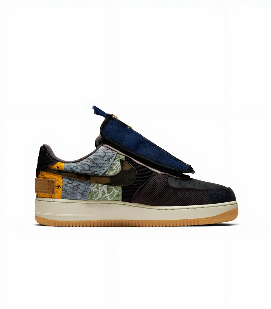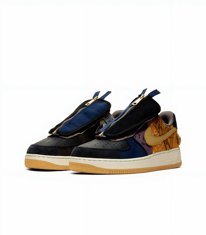 The Nike Air Force 1 Low Travis Scott “Cactus Jack” is one of the most unique takes on the iconic AF1 silhouette. Designed in collaboration with Travis Scott, this pair fuses rugged, workwear-inspired materials with streetwear aesthetics. The upper features a patchwork mix of canvas, suede, corduroy, leather, and flannel in earthy tones, accented with bold pops of color and graphic detailing. A standout feature is the removable zipper shroud overlay, adding versatility and a custom look. Finished with rope-style laces and a gum rubber outsole, the “Cactus Jack” AF1 delivers both durability and style — perfectly embodying Travis Scott’s experimental creative vision.