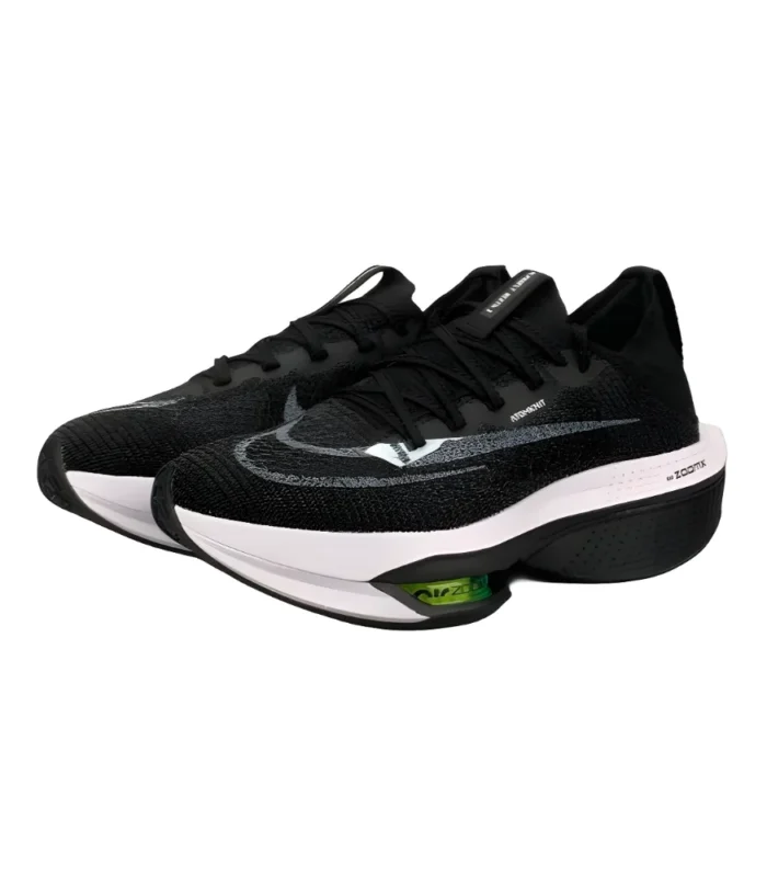 The Nike Air Zoom Alphafly NEXT% 2 “Black” delivers a sleek, race-ready design powered by elite running technology. Featuring a lightweight AtomKnit 2.0 upper, dual Zoom Air pods, a full-length ZoomX midsole, and a carbon fiber Flyplate, it provides maximum propulsion and responsiveness. The all-black edition offers a bold yet versatile look, built for runners chasing speed and endurance.